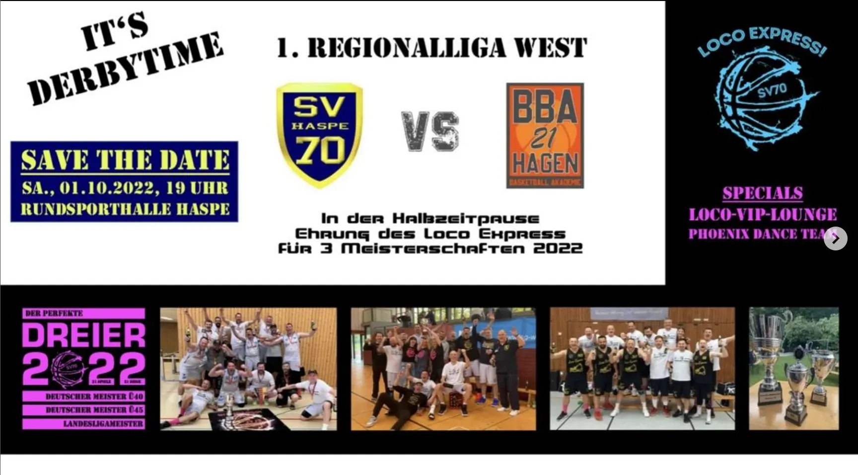 Bereits am zweiten Spieltag der Saison 2022-2023 kommt es in der 1. Regionalliga zu dem Stadtderby in Hagen: Der SV Haspe 70 empfängt das Team der BBA Hagen (BG Hagen) um 19 Uhr in der Hasper Rundsporthalle. Die fleißigen Helfer haben sich einiges ausgedacht, also kommt vorbei.