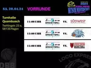 Ein weiteres Highlight steht für die Hasper Basketballer am kommenden Wochenende (20./21.04.2024) auf dem Programm. Die deutsche Meisterschaft der Ü45 findet dieses Jahr in Hagen-Haspe statt, und somit besteht für die „Oldstars“ des überregional bekannten und erfolgreichen LOCO-EXPRESS eine gute Chance zum dritten Mal in Folge in dieser Altersklasse die Goldmedaille zu gewinnen.
