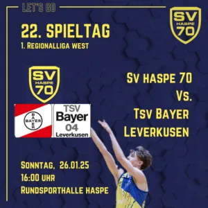 Die Zweitvertretung aus Leverkusen steht zwar aktuell mit 5 Siegen auf dem vorletzten Tabellenplatz, doch der Trends spricht für den ProB-Nachwuchs aus der “Bayer-Stadt”. Die letzten drei Spiele gewannen die sonntäglichen Gäste (Grevenbroich, Ibbenbüren, Deutz). Wer am 22. Spieltag in der Hasper Rundsporthalle antreten wird, ist spannend, denn bereits 24 Spieler haben das Leverkusener Trikot in dieser Regionalliga-Saison getragen.