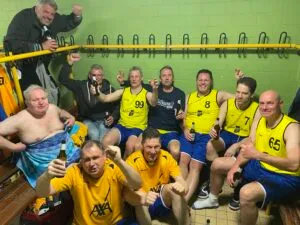 Doch im Schlussviertel sorgten ein gut aufgelegter Rainer Liebermann und besonders Jörg Schmidt mit 11 Punkten für die Entscheidung, die lautstark mit dem einen oder anderen Fläschchen gefeiert wurde.