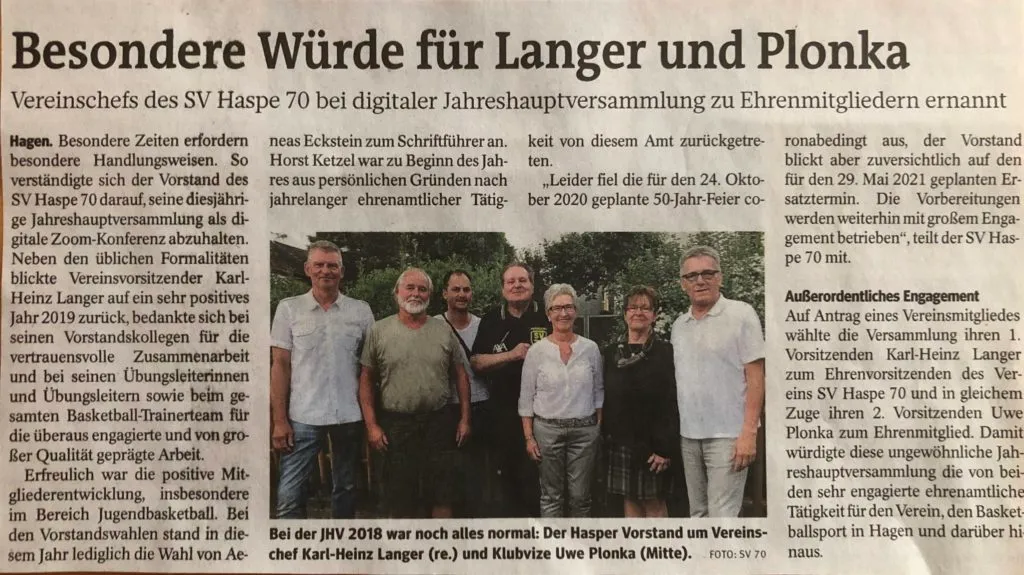 - Nach Verschiebungen fand die JHV erstmals in digitaler Form als Zoom-Konferenz statt.