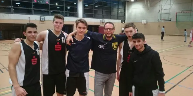 Mit nur fünf Spielern reiste die U18 des SV 70 zum Auswärtsspiel nach Wuppertal. Vor dem Spiel wunderten sich die Gegner, Schiedsrichter und einige Zuschauer und fragten nach, ob noch Spieler kämen… Doch die Antwort war “leider nicht”. Man hatte das Gefühl die Gegner unterschätzen die 5 Hasper. Somit fiel die Ansprache vor dem Spiel dementsprechend aus :-). Mit einem Sieg fahren wir hier nach Hause hieß es! Gesagt getan! Defense war der Schlüssel zum Erfolg. Klare Verhaltensanweisungen und eine laufintensive 2-3 Zone zwang den Gegner zu schlechten Abschlüssen. Marvin und Leon sicherten sich die Rebounds. Anstatt wie immer Vollgas nach vorne, kontrollierte Kilian das Spieltempo und man suchte den Langen am Brett. Im ersten Viertel ging der Gameplan auf. Und die Jungs merkten, hier ist doch ein Sieg drin. Im zweiten Spielabschnitt stellten die Wuppertaler die Defense um. Bei den 70ern war etwas Sand im Getriebe und man machte einige vermeidbare Fehler. Dieses Viertel ging mit 15:15 unentschieden aus. Mit 36:25 ging es in die Halbzeitpause. Bereits jetzt merkte man den Kräfteverschleiß…… Jetzt war es wichtig konzentriert in die zweite Halbzeit zu starten. Wieder ein disziplinstarker Beginn der 70er. eine herausragende Defense und daraus resultierenden Fastbreakpunkte ermöglichten eine 47:31 (26. Minute) Führung. Mit einem krachendem Dunking erhöhte Leon nach einem Steal auf 49:32. Die Gastgeber versuchten jetzt Ihr Glück von der Dreipunkte Linie und verwandelten zum Ende des Spielabschnitt zwei Dreier und verkürzten den Rückstand auf 40:53. Die letzten 10 Minuten des Spiels sind schnell erzählt. In der Offense gelang nichts mehr! Doch in der Defense liefen die Hasper und bissen auf die Zähne. Krämpfe und Schmerzen machten sich breit aber der Wille war. Auszeiten wurden für Pausen genommen. Und tatsächlich schaffte die U18 den Vorsprung durch eine kämpferische Leistung ins Ziel zu bringen! Glückwunsch an Leon, Kilian, Marvin, Nik und Bilal.
