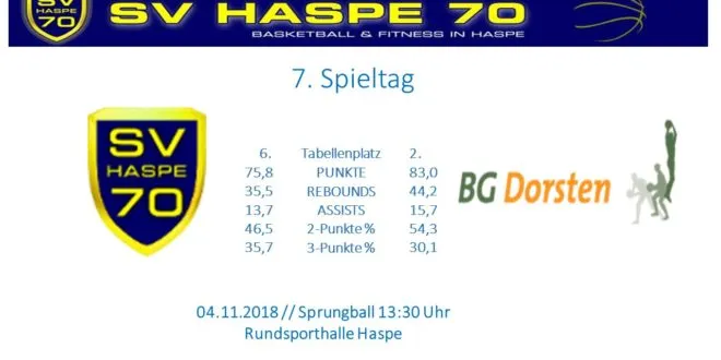 Am kommenden Sonntag 13:30 Uhr empfängt die erste Mannschaft des SV 70 das aktuelle Team der Stunde die BG Dorsten in der Hasper Rundsporthalle. Dorsten ist mit dem starken US Amerikaner Nwabuzor sehr gut auf der Aufbauposition besetzt. Der Guard hat einen unheimlichen Zug zum Korb und kreiert viele Würfe für sein Team. Hinzu kommen die erfahrenen Schützen Nderim Pelaj und Rene Penders sowie der Allrounder auf dem Flügel Paskov die aus dem Spiel genommen werden müssen. Nicht zu vergessen die Langen in den Reihen der Dorstener. Mit Köhler und Budde verfügt Coach Franjo Lukenda über zwei sehr Defensiv- und Rebound starke Center. Ein Wiedersehen wird es mit Arbnor Voca geben, der Jungcenter spielte noch letztes Jahr für die 70er.