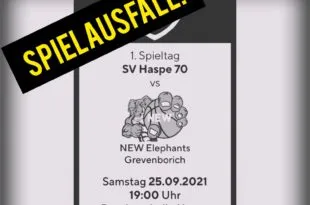 Das heutige Spiel SV Haspe 70 vs NEW Elephants Grevenbroich fällt aufgrund eines positiven Covid19 Falls in unserem Team aus. Die Gesundheit geht vor und wir wünschen an dieser Stelle dem Spieler gute …