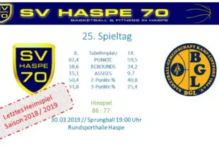 Einen besseren Saisonabschluss hätten die 70er nicht haben können. Am morgigen Freitag (20:15 Uhr Otto Densch Halle) gastieren die Hasper beim Lokalrivalen und Tabellendritten der BG Hagen. Ein Hagener Regionalliga Derby welches immer …