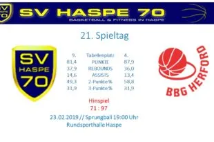 SV Haspe 70 : SVD Dortmund 112:102 Die erste Mannschaft verschaffte sich am vergangenen Samstag durch einen 112:102 Sieg nach Verlängerung gegen Dortmung Derne Luft zu den Abstiegsplätzen und klettert auf den achten …