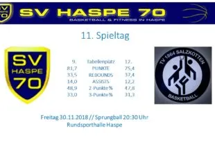 Am morgigen Freitag empfangen die 70er um 20:30 Uhr die Accent Baskets aus Salzkotten in der Hasper Rundsporthalle. Dabei geht es um zwei wichtige Punkte für den Klassenerhalt. Die Gäste bisher nicht gut …