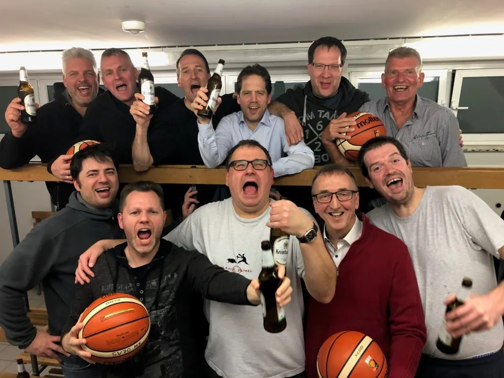Nach der Pause wogte das Spiel hin und her, ehe Dreier von Arno Rissmann und Jörg Schmidt und vier Punkte am Brett von Konstantin Fresen die Führung auf 9 Punkte (40:31) anwachsen ließ. Doch auch jetzt waren die Oldies noch nicht durch, denn den besseren Start ins letzte, entscheidende Viertel erwischten die Boeler. Durch zwei Dreier und mehrere Punkte in der Zone kamen sie binnen 5 Minuten noch einmal gefährlich auf 3 Punkte heran (46:43). Patrick Langer traf einen weiteren wichtigen Dreier, doch das Heimteam blieb in Schlagdistanz und verkürzte auf 2 Punkte, 51:49 (39. Minute). Die Coaches Lück und Just baten zur Auszeit, und hier wurde die Marschrichtung für die letzten eineinhalb Minuten besprochen: Zeit runter spielen, keine unnötigen Ballverluste. Die Boeler foulten, waren aber noch nicht in Mannschaftsfoulproblematik. Marcel Herpel traf nach einem weiteren Boeler Foul nervenstark beide Freiwürfe. Im Gegenzug scorten die Boeler nicht, so dass die Hasper wieder Ballbesitz hatten und weitere Zeit von der Uhr nahmen. Als dann die beiden sehr gut leitenden Schiedsrichter einen Boeler Spieler nach seinem zweiten unsportlichen Foul an diesem Abend disqualifizierten und Jörg Schmidt mit zwei weiteren getroffenen Freiwürfen (insgesamt 9/9 FW !) erhöhte, war die Partie entschieden, und die Hasper konnten den Sieg in dieser Partie und damit die Meisterschaft feiern!