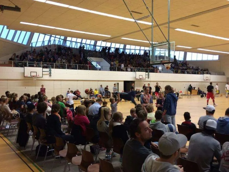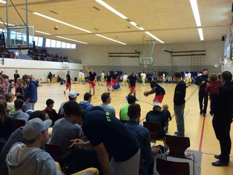 Im Anschluss dann der obligatorische Phoenix-Auftritt mit dem Spiel gegen den Spitzen-Pro A-Ligisten Gießen 46ers. Die gut besuchte Halle konnte sich von den Qualitäten beider Teams vor Ort einen Eindruck machen. Das Spiel wog hin und her, letztlich siegte Phoenix mit 88:78.