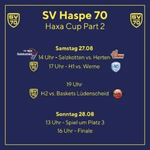 Das vierte Team beim diesjährigen HAXA-Cup-Turnier sind die LippeBaskets Werne. Die Mannschaft von Christoph Henke spielt in der 2. Regionalliga 2 und steht wie alle Teams mitten in der Saisonvorbereitung. Am letzten Wochenende absolvierten die LippeBaskets einen Test gegen den Neu-Erstregionaligisten UBC Münster 2 und überzeugte drei Viertel mit einer guten Leistung, ehe die Partie 70:82 verloren ging.
