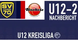 Jugendkreisliga U12 offen HA + EN 4. Spieltag : Baskets Lüdenscheid 2 vs. SV Haspe 70 2 Endstand : 38:72 (2:2,5:8,7:14,14:27,23:33,25:47,28:56) Am heutigen Sonntag ging es für die U12-2 zu den Baskets …