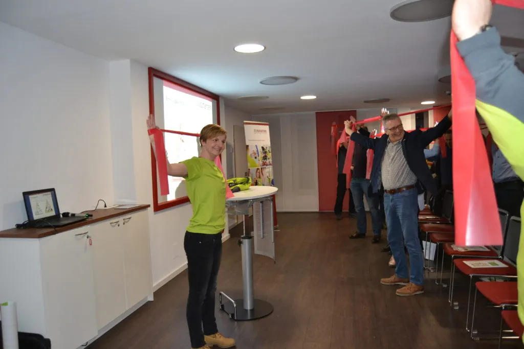 Am 21.Februar fand der erste Infoabend im Therapiezentrum am Mops (kurz TZM) statt, bei dem sich Trainer und Spieler sowie Eltern und Angehörige des SV Haspe 70 zum Thema “Hilfe, ich verletze mich beim Sport – was nun?” informiert haben. Natascha Cording, Physiotherapeutin und Standortleiterin des TZM (selber auch Spielerin im Landesligateam des SV Haspe 70), stellte die “Erste-Hilfe-Empfehlung bei einer Sportverletzung” vor. Im Anschluss daran gab es von Sandra Werner, Diplom-Sportlehrerin und Teamleiterin für Prävention&Sport, nützliche Tipps rund um das Thema Präventionsmaßnahmen, um das Verletzungsrisiko zu verringern. Zum Schluss kamen die zahlreich erschienenen Gäste noch ein wenig ins Schwitzen, denn Sandra Werner probierte ein paar Übungen mit dem Theraband aus, die jeder an diesem Abend als Gastgeschenk mitbekommen hat. Dabei stand der Spaßfaktor an erster Stelle.
