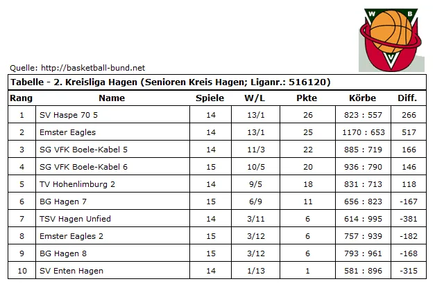| SV Haspe 70 5 | – | SV Enten Hagen | 63 : 38 |