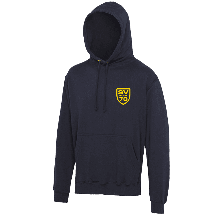 Unser SV 70 Club Hoodie steht in den Vereinsfarben zur Verfügung und ist mit versteckten Öffnungen für Kopfhörerkabel in der Seitentasche ausgestattet; kurz, das ideale Kapuzenshirt für die Freizeit. Logo Druck inklusive.