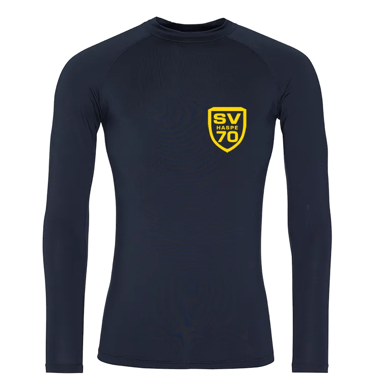Dieses langärmelige Basislayer für Herren aus einem leichten Stoff mit Raglanärmeln für natürliche Bewegungsfreiheit stellt sicher, dass Sie es bei Ihrem Training an kälteren Tagen warm und bequem haben.