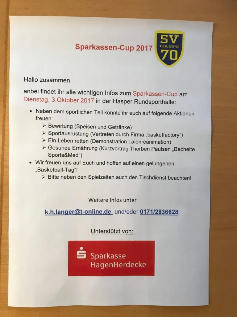 Den diesjährigen traditionellen Sparkassen-Cup für u12-Teams richtet der SV Haspe 70 in Kooperation mit der Sparkasse HagenHerdecke aus.