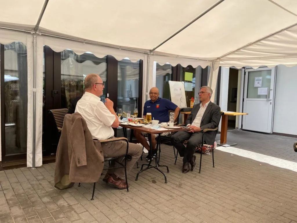 Am 20.6.21 fand dann die 2. Veranstaltung wieder im Waldrestaurant Cafe Halle mit besonderen Vereinsmitgliedern, der Hagener Politik – an ihrer Spitze der Oberbürgermeister Erik O. Schulz, Bezirksbürgermeister Horst Wisotzki, Sportausschussvorsitzender Timo Schisanowski und der stellvertretende Bürgermeister Dietmar Thieser. Der Stadtsportbund Hagen war mit Rainhard Flormann und Peter Alexander vertreten. Für den Westdeutschen Basketball-Verband ( Sitz in Duisburg) und als Vertreter für den Deutschen Basketball-Bund ( Sitz in Hagen) – leider war Präsident Ingo Weiß verhindert – sind Uwe Plonka ( Präsident des WBV) und Joseph Kattur ( Vizepräsident I ) gerne der Einladung gefolgt.