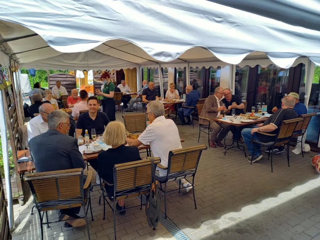 Die Vereinsführung entschloss sich daraufhin, zumindest für Sponsoren, Gönner verdiente Vereinsmitglieder, Politik, befreundete Vereine, Institutionen und Verbände am 13. und 20.6.21 Corona-konform im Waldrestaurant Cafe Halle kleine Feiern zu gestalten.
