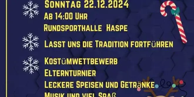 Bei festlich geschmückter Halle, besinnlicher Weihnachtsmusik und einer großen Auswahl an Speis und Trank möchten wir – alle Trainer und Verantwortlichen des SV70 – gemeinsam mit unseren tollen Vereinsmitgliedern von jung bis „nicht mehr ganz jung“ auf ein spannendes und erfolgreiches Jahr 2024 zurückschauen und es zugleich ausklingen lassen.
