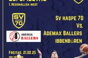 Ein weiteres wichtiges Heimspiel steht für die 1. Mannschaft des SV Haspe 70 auf dem Programm. Zu Gast in der Hasper Rundsporthalle werden die Ademax Ballers Ibbenbüren sein. Freitag, 21.2025 | 20:15 Uhr …