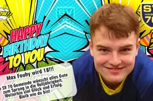 Wir wünschen Max alles Gute zum Sprung in die Volljährigkeit. Weiterhin viel Glück und Erfolg. Bleib wie du bist. SV 70 Gemeinde 😀