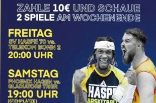 Das SV70-Orgateam hat sich gemeinsam mit den Verantwortlichen von Phoenix Hagen etwas einfallen lassen: Unter dem Motto “Gemeinsam im Kampf um die Play-Offs” gibt es in dieser Woche ein besonderes Kartenangebot: Zahle 10 …