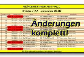 Aufgrund eines kurzfristigen Zusammenschlusses des Kreises Hagen mit dem Ennepe-Ruhr-Kreis ist ein neuer Spielplan der u12.2 aufgestellt worden. Bei den mit gelb markierten Felder fehlen noch Daten. Sobald ich sie habe, liefere ich …