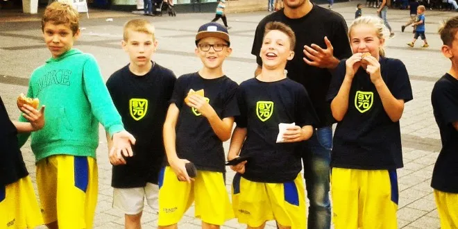 Hierfür hatte man nun drei Stunden und so ging man in die Wuppertaler Innenstadt, um sich für das Spiel zu stärken und den 1.Spieltag der Bundesliga zu verfolgen. Hier lernte man die Kinder von der etwas anderen Seite kennen *grins*. Sei es Majes Liebe zu Chickenburgern, Jarnos Jubel bei Schalke Toren, dem spendablen Maurice` und dem “Bad-Boy” Lukas, der sich Strohhalme und Salz bei Burger King in die Taschen einsteckte (das waren nur einige Beispiele).