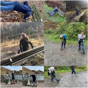 Um sich nicht nur virtuell und vor der „Glotze“ zu sehen, traf sich die Mannschaft in 2er Teams und in 10-Minuten-Abständen die letzten Samstage, um ein Joggingründchen um die schöne Hasper Talsperre zu drehen. Auf den gut 5km Rundweg gibt es diverse Bänke, an denen die Kinder unterschiedliche Aufgaben zu bewältigen hatten. Um nichts zu vergessen, gab es am Start einen Aufgabenzettel mit und ein Handy, um die Übungen zu dokumentieren.