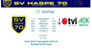 TUS Fellinghausen – Haspe 70 III 65:108 (17:25, 8:28, 24:33, 16:22) Ein spannender Ausflug vom Express zum Start der Rückrunde nach Kreuztal im Siegerland, endete in einem weiteren Kantersieg mit einigen Nebengeräuschen. Die Hasper starteten recht …