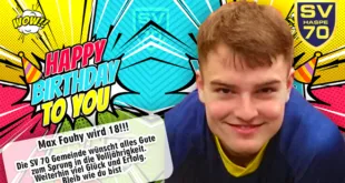Wir wünschen Max alles Gute zum Sprung in die Volljährigkeit. Weiterhin viel Glück und Erfolg. Bleib wie du bist. SV 70 Gemeinde 😀