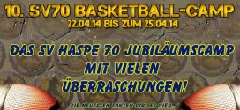 Aktuelle Anmeldezahl: 10.04.2014: 57 Teilnehmer – Das ist “spitze”! Das 10.te SV Haspe 70 Basketball Camp findet in diesem Jahr vom 22.04. bis zum 25.04.2014 statt. Anläßlich des 10jährigen Jubiläums ist es gespickt …
