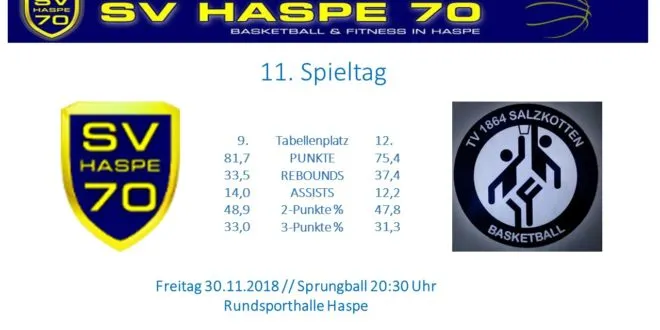 Am morgigen Freitag empfangen die 70er um 20:30 Uhr die Accent Baskets aus Salzkotten in der Hasper Rundsporthalle. Dabei geht es um zwei wichtige Punkte für den Klassenerhalt. Die Gäste bisher nicht gut in die Saison gestartet verfügen aber über viel Qualität auf den Positionen. Mit Wolf, Finke und Wennigkamp stehen drei erfahrene Regionalligaspieler in den Reihen der Accent Baskets. Die Drei sind auch die tragenden Säulen des Teams. Unterstützt werden sie von jungen talentierten Nachwuchsspielern, hier sind insbesondere Kretschmann und Kerfs hervorzuheben. Die 70er werden alles daran setzen um die Wende, nach drei Niederlagen in Folge, einzuleiten und zwei wichtige Punkte einzutüten.