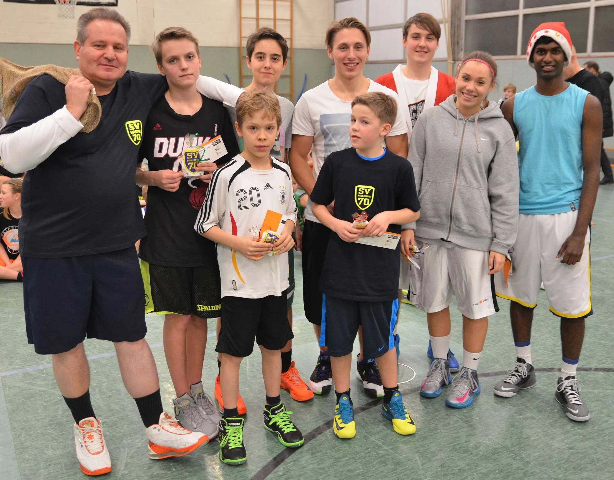 Von ganz klein bis ganz groß, von BB-Anfänger bis BB-“Profis”, von Eltern bis Freunde, von Coaches bis Vorstand, von Damen bis Herren, von Mädels bis Jungs, von gesund bis nicht ganz fit, von neugierig bis gespannt, von passiv bis aktiv, von zum 1.Mal bis Dauergast, ………… , alle waren sie gekommen, um am Xmas-Turnier des SV70 teilzunehmen.